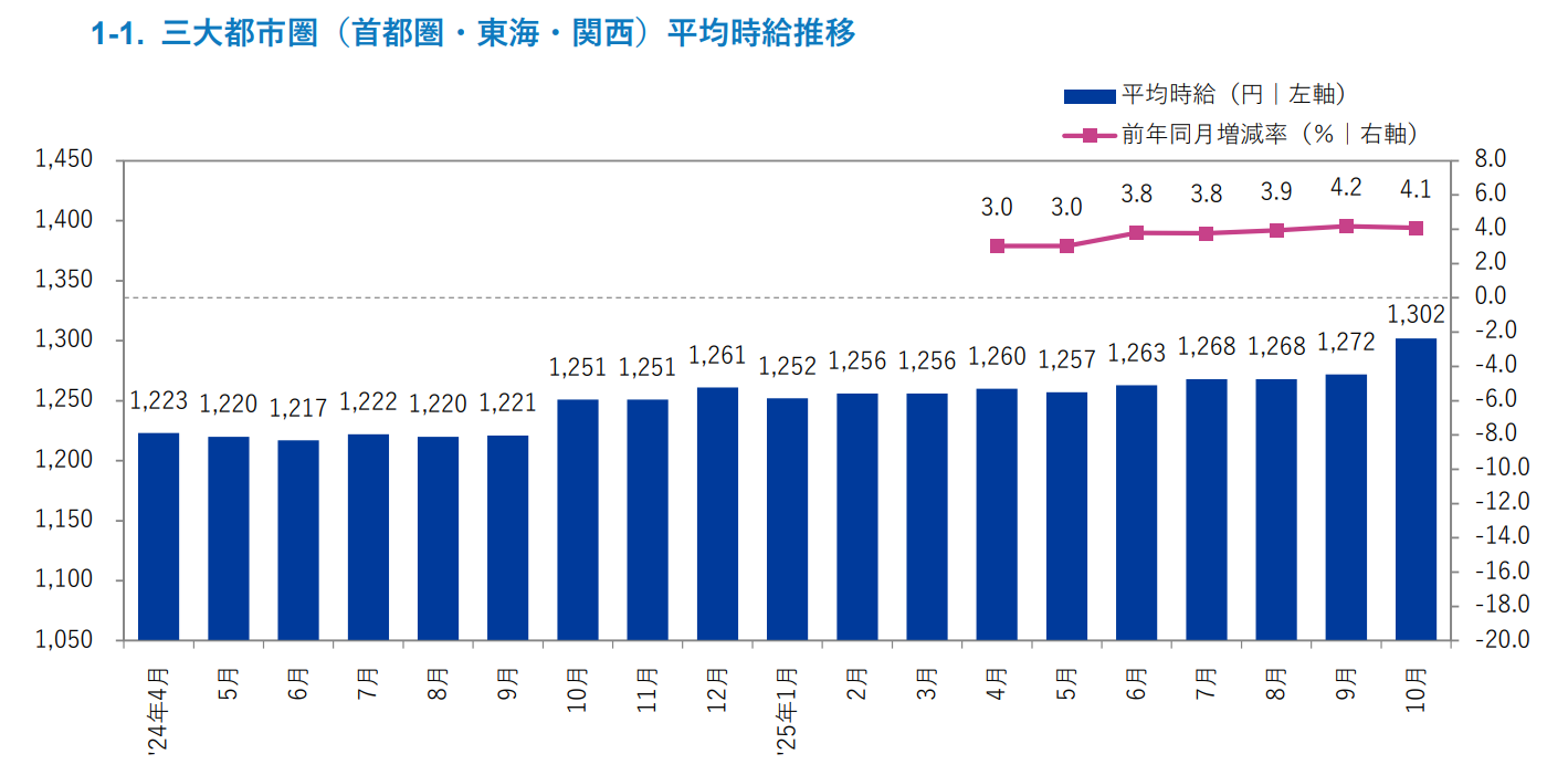 2025年10月度 アルバイト・パート募集時平均時給調査【三大都市圏(首都圏・東海・関西)】