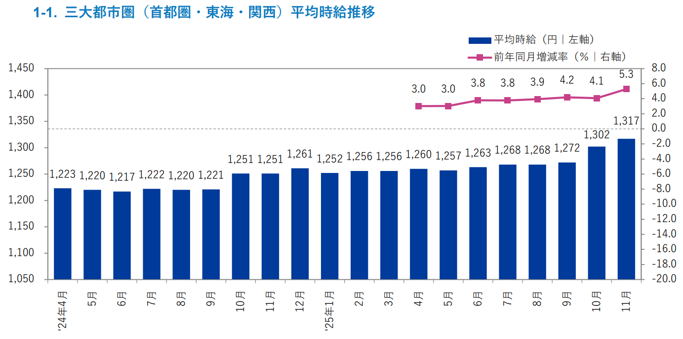 2025年11月度 アルバイト・パート募集時平均時給調査【三大都市圏(首都圏・東海・関西)】
