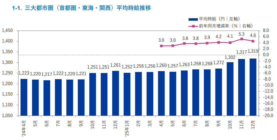 2025年12月度 アルバイト・パート募集時平均時給調査【三大都市圏(首都圏・東海・関西)】
