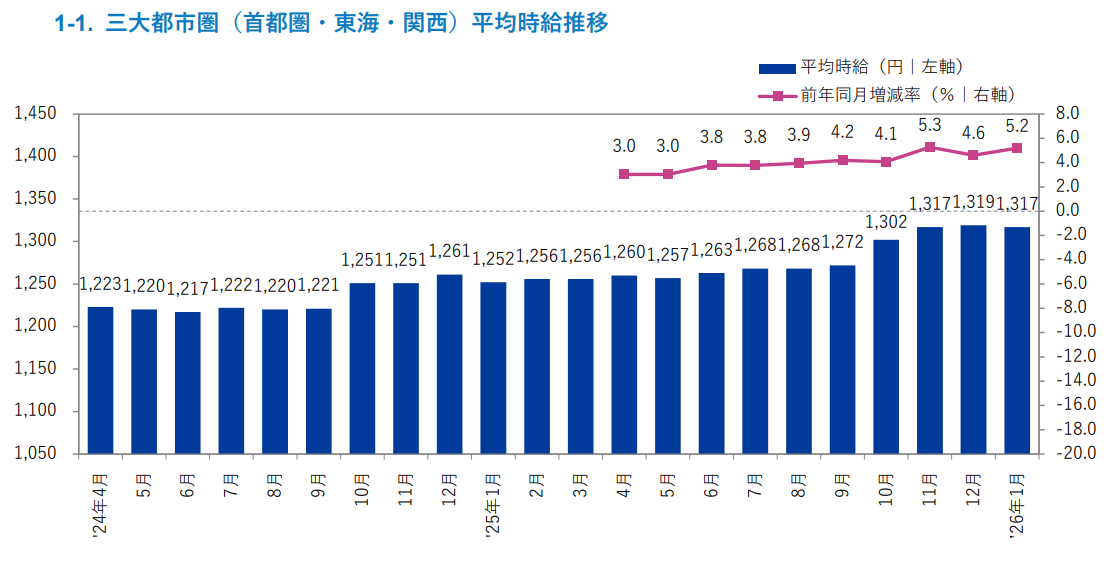 2026年1月度 アルバイト・パート募集時平均時給調査【三大都市圏(首都圏・東海・関西)】