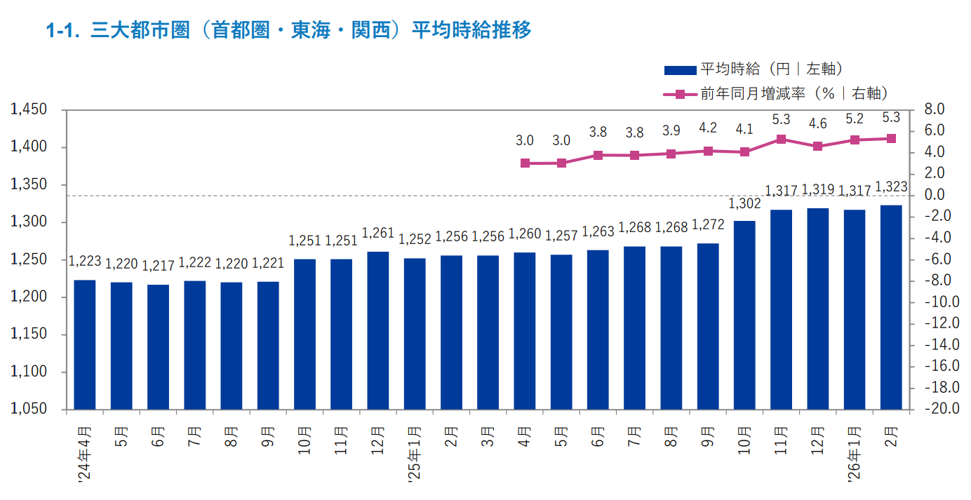 2026年2月度 アルバイト・パート募集時平均時給調査【三大都市圏(首都圏・東海・関西)】